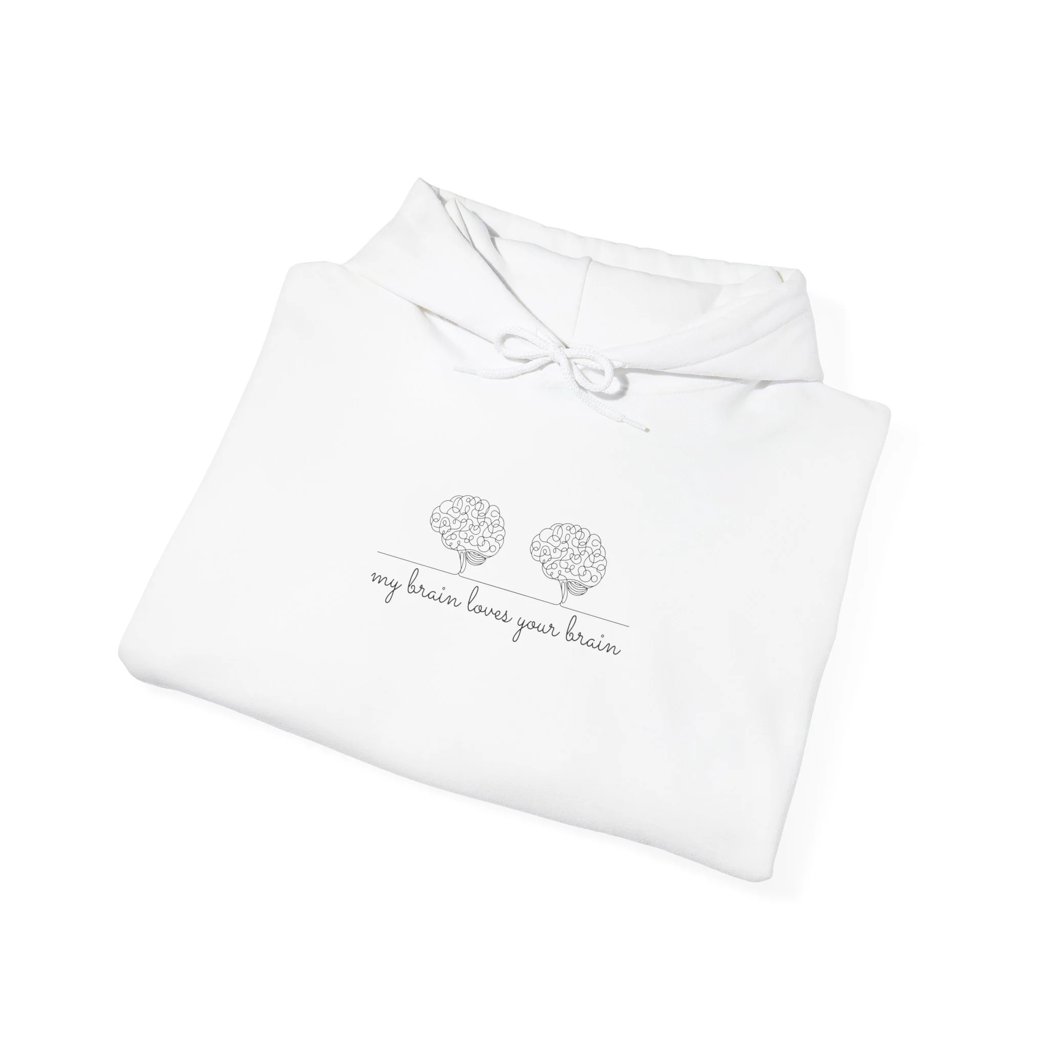 A cozy and stylish hoodie featuring the sweet message 'My Brain Loves Your Brain.' Perfect for lounging at home, casual outings, or as a thoughtful gift for a loved one. Ideal for adults and suitable for chilly days.